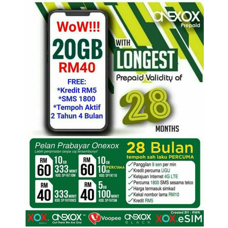 Anda cuma rekeman kan saja segala urusan pengaktifan. ONEXOX ialah jenama kepada pelan perkhidmatan telekomunikasi mudah alih yang dikelolakan oleh ONE XOX SdnBhd. Tempoh Sah kredit SIM kad anda akan aktif selama 30 hari tanpa membuat sebarang tambah nilai dari tarikh pengaktifan dibuat.