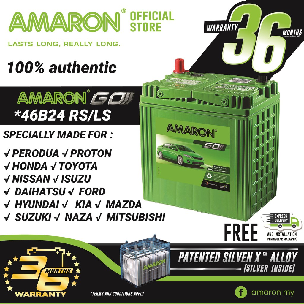 Amaron Go Series 46b24rsls Car Battery Premium Lasting For Proton Perodua Honda Toyota Mazda Shopee Malaysia
